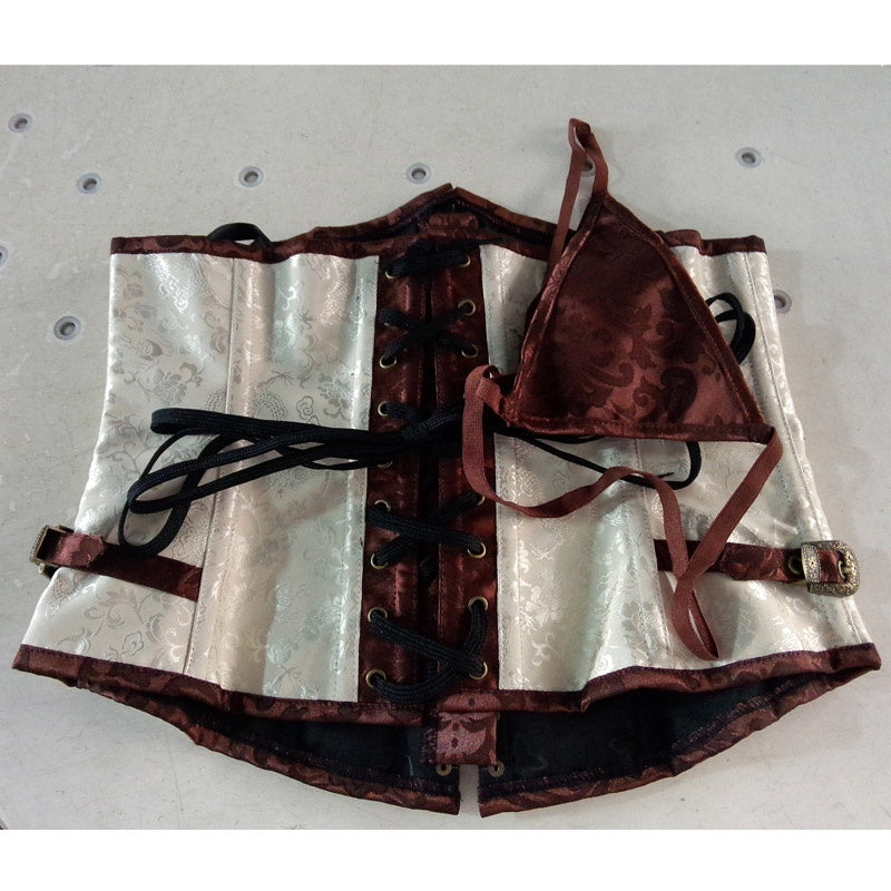 - Item name: Brown and Lvory Underbust Corset Goth Buckle Highest Quality Flowers Pattern Steampunk Corset