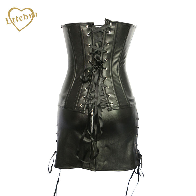 Gender: Women;Item Type: Bustiers & Corsets;Decoration: None;Pattern Type: Solid;Style: Sexy;Brand Name: lttcbro;Material: Spandex,Polyester Blends;Material Composition: Faux leather,Cotton Lining,Ribbon;Model Number: L7625;Color : Black,Red;Store Categories: Overbust Corset;Design: Leather corset dress;Size available: S, M ,L ,XL, XXL;Available: Halloween, Club party, Cosplay, Everyday;Boned: Plastic Boned;Packing Including: corset top+G-string+Skirt;Features : Body Shaping, Waist Training, Weight loss, Cosplay;Season: Spring Summer Autumn Winter;Support procurement type: Retail,Dropship,Wholesale;
