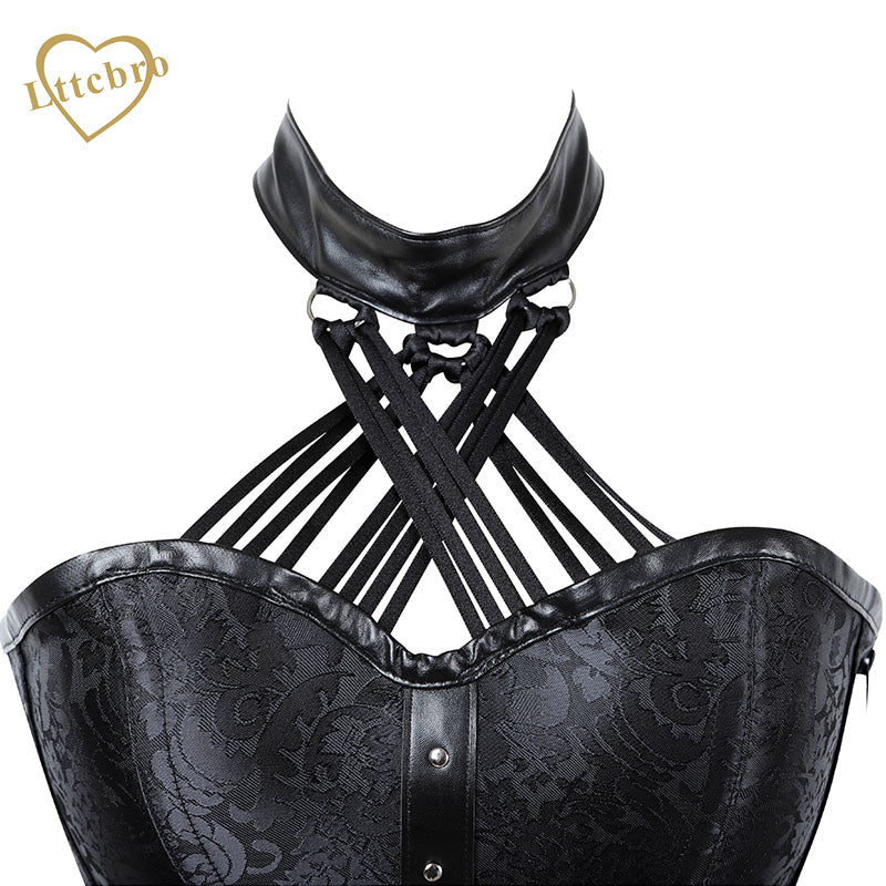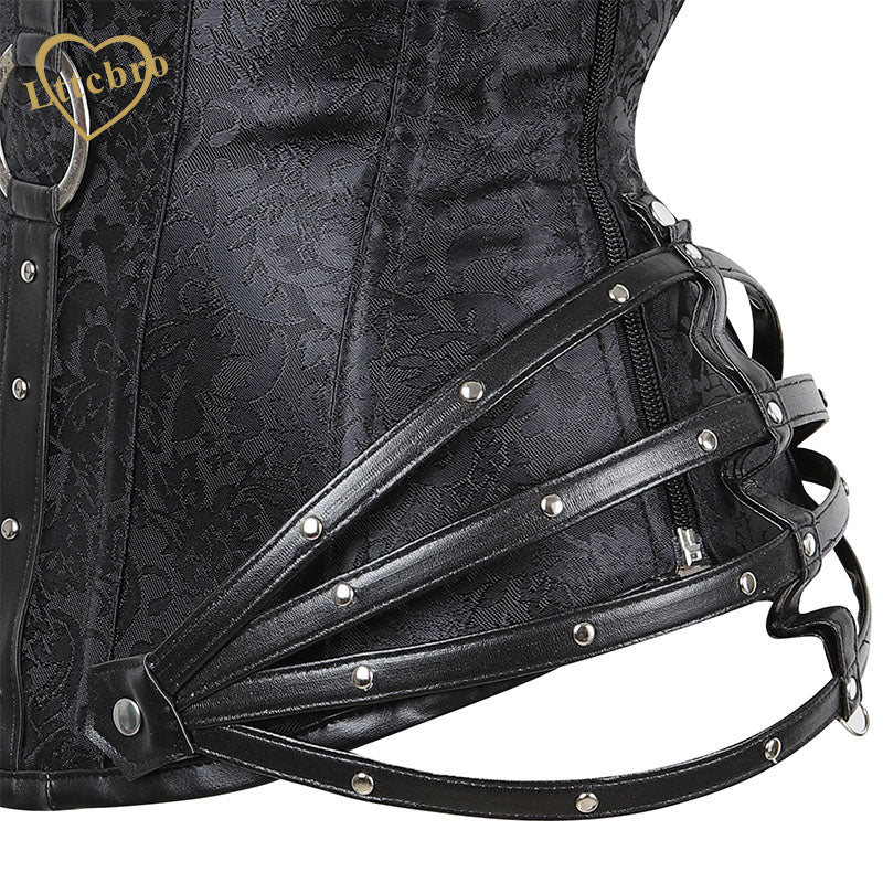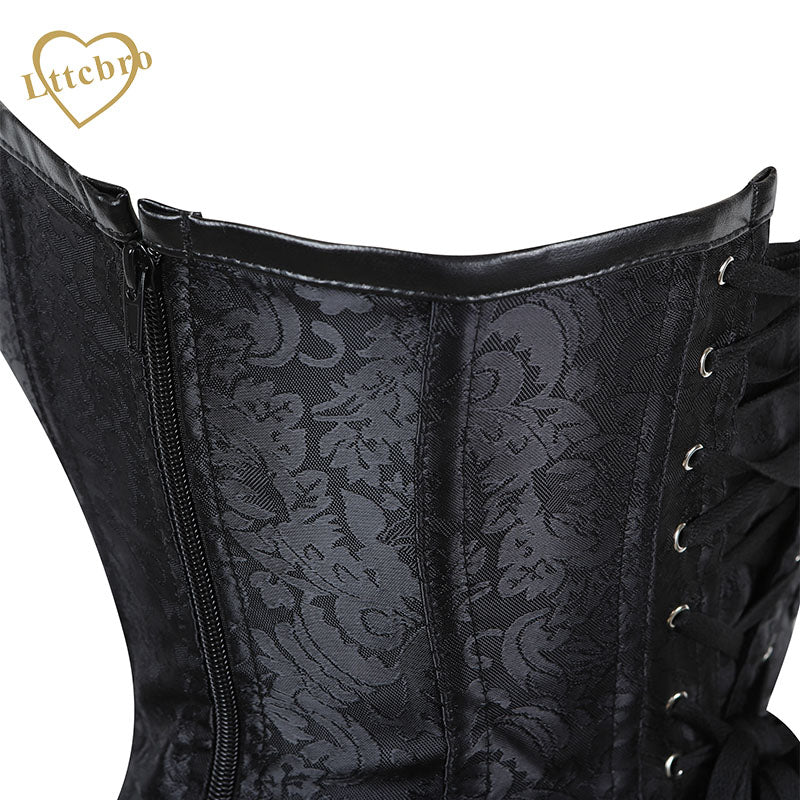 Gender: Women;Item Type: Bustiers & Corsets;Style: Everyday;Model Number: L7694;Material: Polyester Blends,Spandex;Pattern Type: Floral;Brand Name: lttcbro;Material Composition: Brocade,Chain,Cotton,Buckled;Decoration: Button;Color: Black;Store Categories: Steampunk Corset;Gender : Women;Design: Overbust Corset;Size available : S M L XL XXL;Available: Halloween Club party Cosplay Everyday;Boned: Steel boned;Packing Including: corset top+G-string;Features: Body Shaping, Waist Training,Weight loss Cosplay;Season: Spring Summer Autumn Winter;