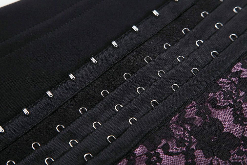 Elastic lace and mesh Comes with 9 Piece Spiral steel bones under bust waist corset top Front 3 columns hook-and-eye closure on waist cincher, easily adjust size |